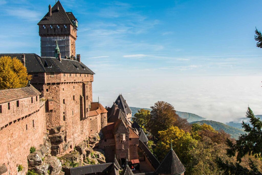 Perché à près de 800 mètres d’altitude, le Château du Haut-Koenigsbourg domine la plaine d’Alsace et offre une vue imprenable sur les Vosges, la Forêt-Noire et parfois même les Alpes.